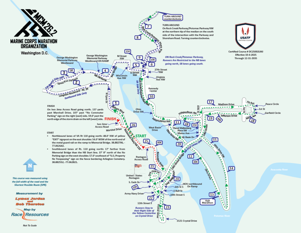 If you look in the USATF Course Database, you’ll find two active entries for the Marine Corps Marathon. One was certified last year for the 2024 race, and the other has been on file for several years. There is no new entry for the 2025 race.
