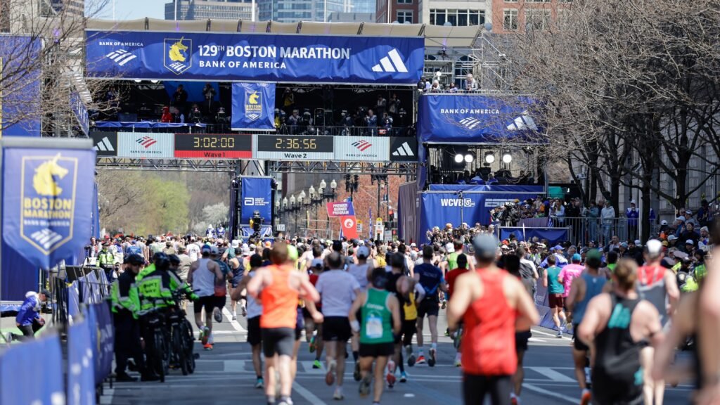 Finish line at the 2025 Boston Marathon (Photo by Stew Milne/BAA)